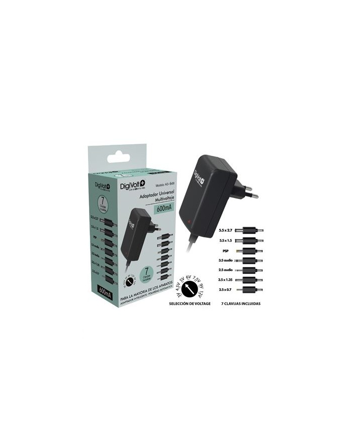 CARGADOR UNIVERSAL MULTIVOLTAJE 600MAH 7 PUNTAS DIGIVOLT