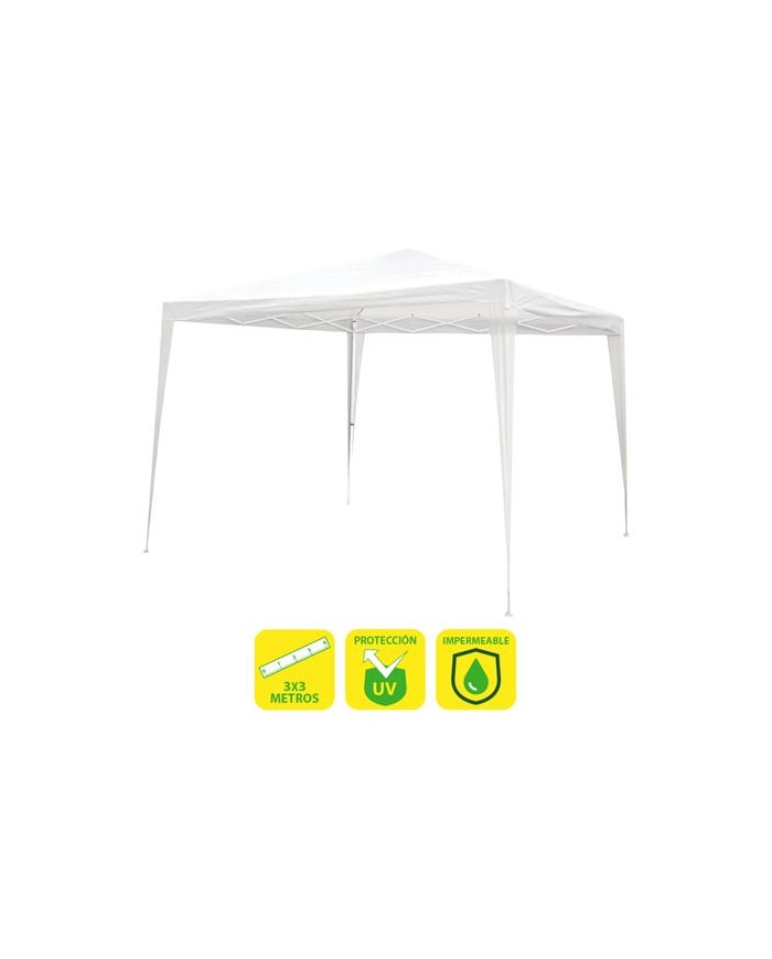 Ofrece una sombra de calidad, manteniendo una temperatura agradable y protegiendo de los rayos UV. Las propiedades impermeables de la cubierta se adaptan perfectamente a los climas cambiantes. Sol y lluvia dejarn de preocuparte! Con medidas de 3 metros de longitud por 3 metros de anchura y una altura de techo de 2,45m, proporciona un ambiente perfecto disfrutar de reuniones al aire libre con espacio suficiente para 8 personas alrededor de una mesa Incluye un set completo de piquetas y vientos, lo que garantiza que estar perfectamente asegurada en cualquier tipo de terreno. Las piquetas diseadas para ser fijadas fcilmente en el suelo proporcionan una sujecin firme, mientras que los vientos adicionales ofrecen una mayor estabilidad y resistencia ante rfagas de