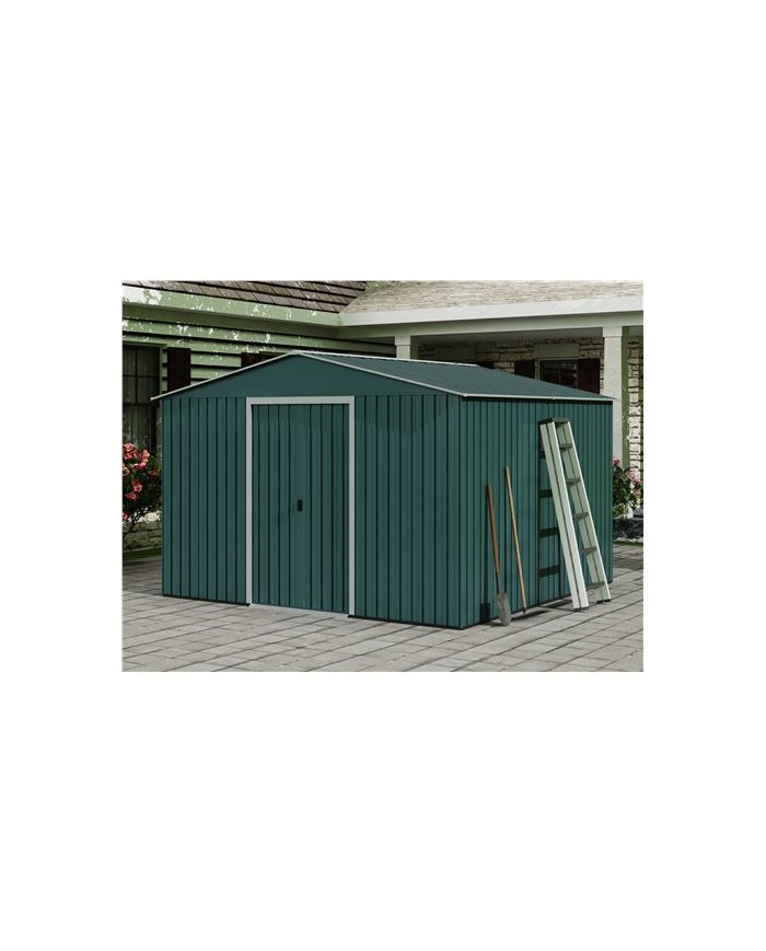 tiles para quienes necesitan un espacio adicional seguro y resistente para almacenar objetos. Dimensiones: 300x304.5x214.5cm, 9.14m2 (largo x ancho x alto) Color: verde. Paneles de acero galvanizado de 0.25mm de espesor. Techo inclinado para facilitar la salida de agua. Puerta de corredera. Marco de aluminio y base de metal. Fcil montaje y mantenimiento. Peso: 125kg Ancho puerta: 100cm Esto producto se suministra en 3 bultos: - 182x61.5x10.5cm - 49.10Kg - 182x50.5x10.5cm - 28.60Kg - 182x44.5x7.5cm - 31.50Kg