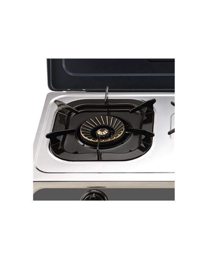 Material de acero inoxidable Encendido piezoelctrico Quemador de hierro fundido de alta calidad. Quemadores desmontables para fcil limpieza. Base antideslizante Dimensiones: 71x37x12.3 cm (ancho x fondo x alto)