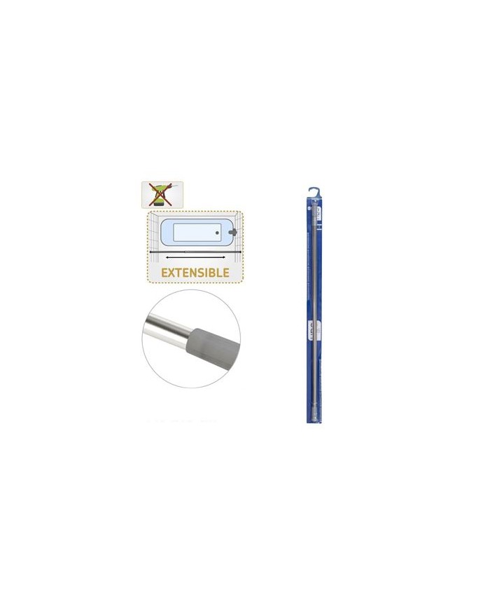Barra ideal para armarios y cortinas de bao con muelle a presin incorporado. Medidas: 140 - 260 cm. Material: Acero inoxidable. Color: Cromado.