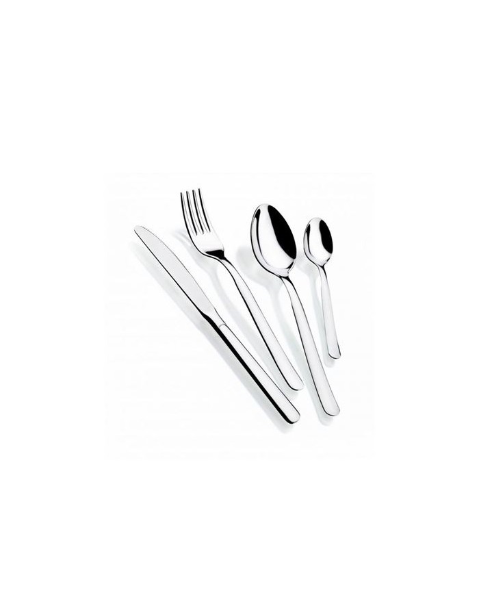 Fabricado en acero inoxidable 18/C Espesor 1,8 mm Composicin: 6 cucharas / 6 tenedores / 6 cuchillos/ 6 cucharitas caf Diseo atemporal para tu da a da Mango redondeado Apto para lavado en lavavajillas Acabado brillante Cubertera fabricada en Europa