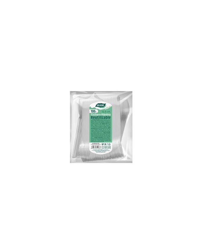 PACK 100 CUCHARAS POSTRE PLASTICAS REUTILIZABLES BLANCAS ALGON