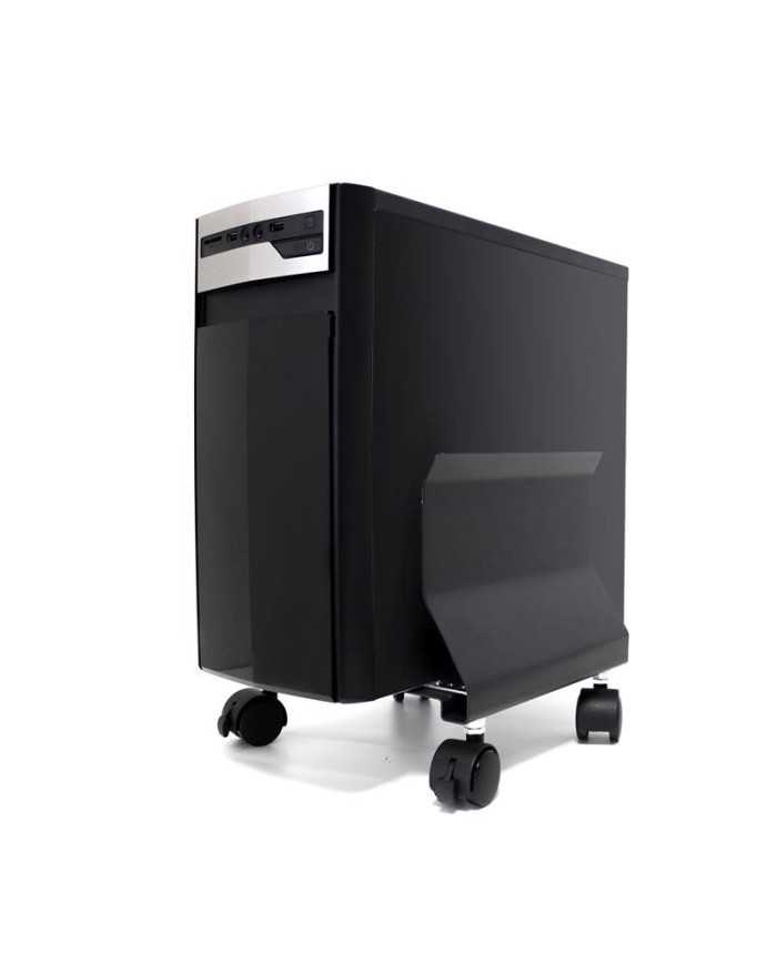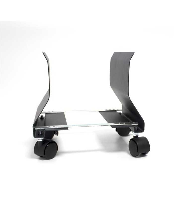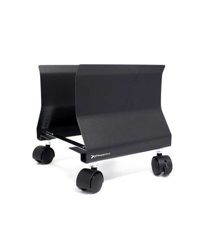 Perfecto soporte resistente Phoenix para ordenadores con ruedas de color negro.