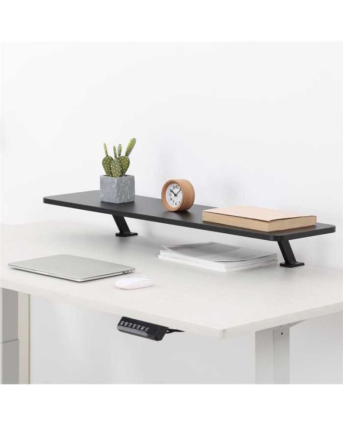 Su superficie de 100 x 26 cm fabricada en madera MDF es capaz de soportar hasta 20 kg de peso y su estructura metálica le otorgan la robustez necesaria para albergar la mayoría de monitores del mercado.