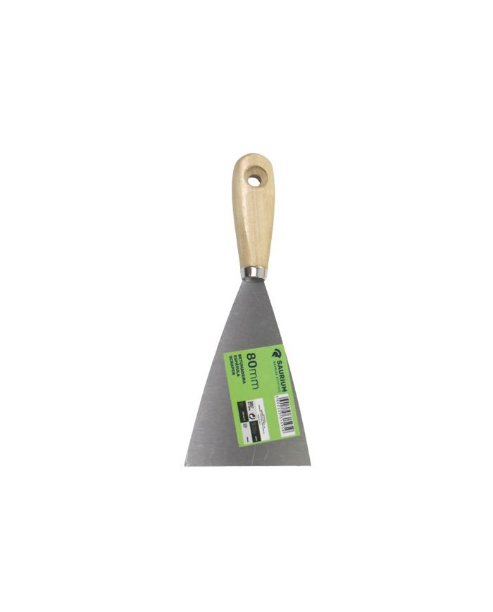 Esptula 80mm. Recomendado para emplastar, eliminar restos de pintura, papel, etc Mango de madera y acero.Embalaje: Altura 20.00 cm Anchura 8.00 cm Longitud 2.00 cm Peso Bruto 0.05 kg Peso Neto 0.05 kg