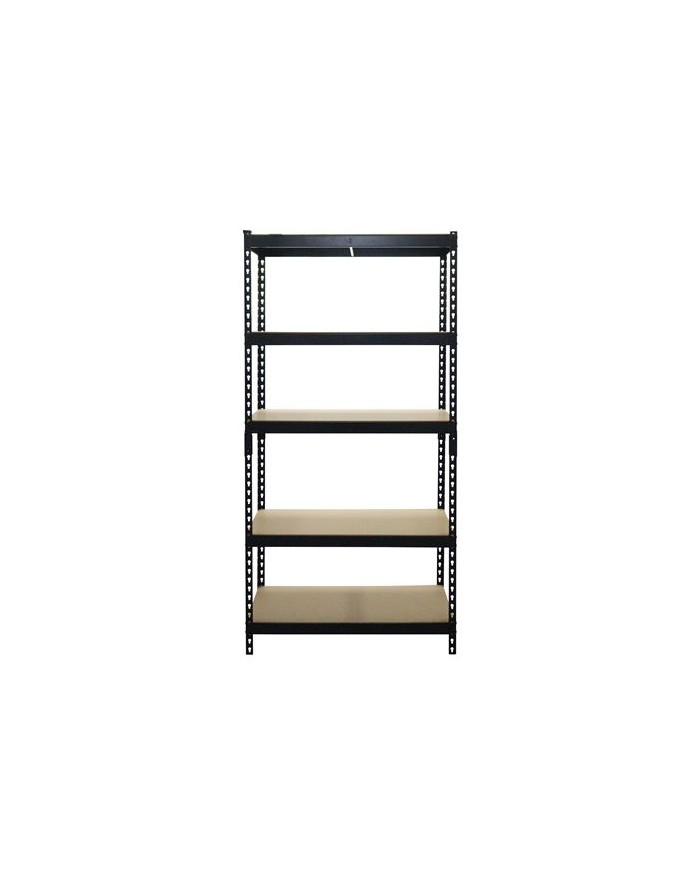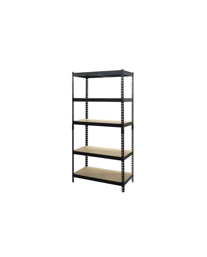 Estantera metlica 5 baldas ajustables Soporte 175Kg por balda. Dimensiones: 183X90X45cm Estanteria rectangular sin tornillos Espesor acero: 0.62mm Espesor estantes de madera MDF: 4mm Fcil montaje. Recubrimiento polvo negro.