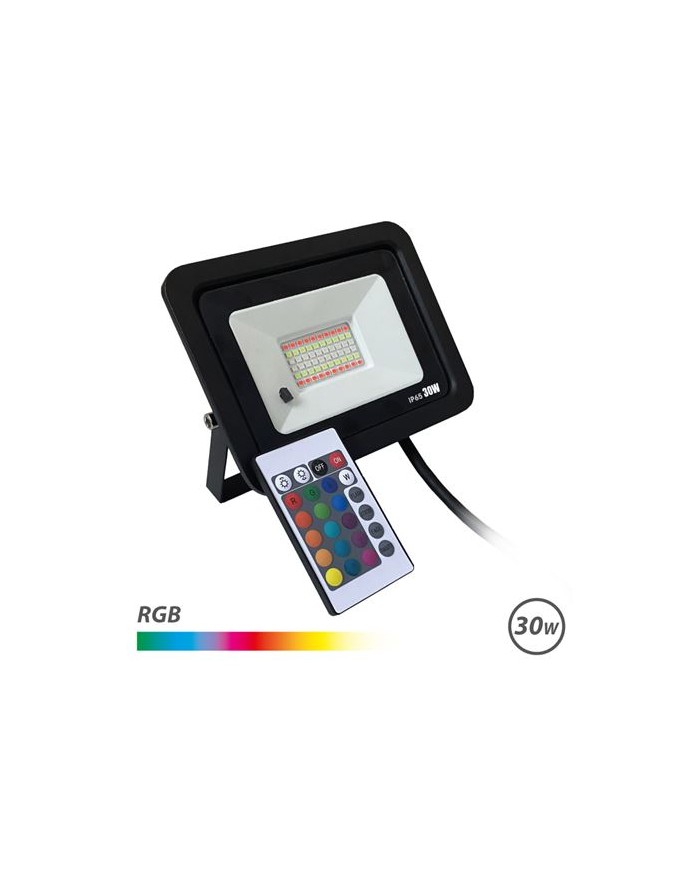 Foco led RGB Potencia: 30W Control remoto incluido Multitud de combinaciones de colores IP65 Ideal exterior Dimensiones: 160x121x26mm