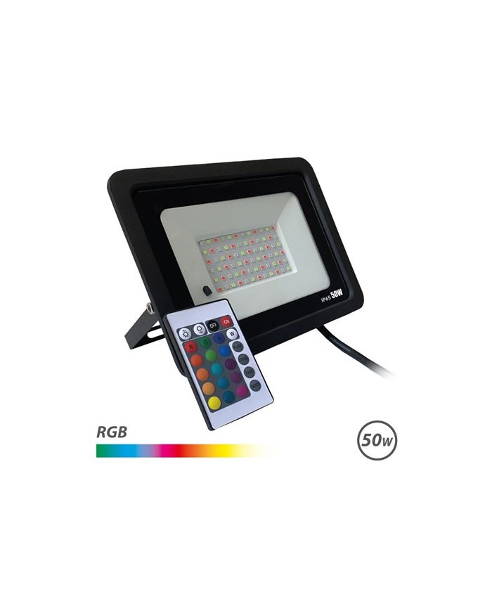Foco led RGB Potencia: 50W Control remoto incluido Multitud de combinaciones de colores IP65 Ideal exterior Dimensiones: 208x162x29mm