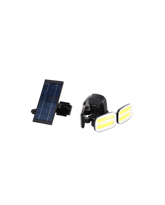 Panel solar: 210 110 mm, 6V, 3W. Fuente de luz: 240 COB LED. Flujo luminoso: 800 lmenes (ajustable: 800/400/45 lm). Temperatura de color: 6500K (blanco fro). Batera: 418650 litio de 1200mAh cada una (4800mAh total). Carga: Solar, cable incluido. Control: Mando a distancia incluido. Modos de funcionamiento: - Luz apagada sin movimiento. - Luz dbil sin movimiento. - Luz encendida continua al anochecer. Sensor de movimiento: 120 de ngulo y 3-5 metros de alcance. Proteccin: IP64 (resistente al polvo y a salpicaduras de agua). Duracin de la batera: 3-4 das de autonoma con carga completa. Material: ABS + PC de alta resistencia. Tamao del foco: 523,8 184,5 mm. Interruptor: Bot