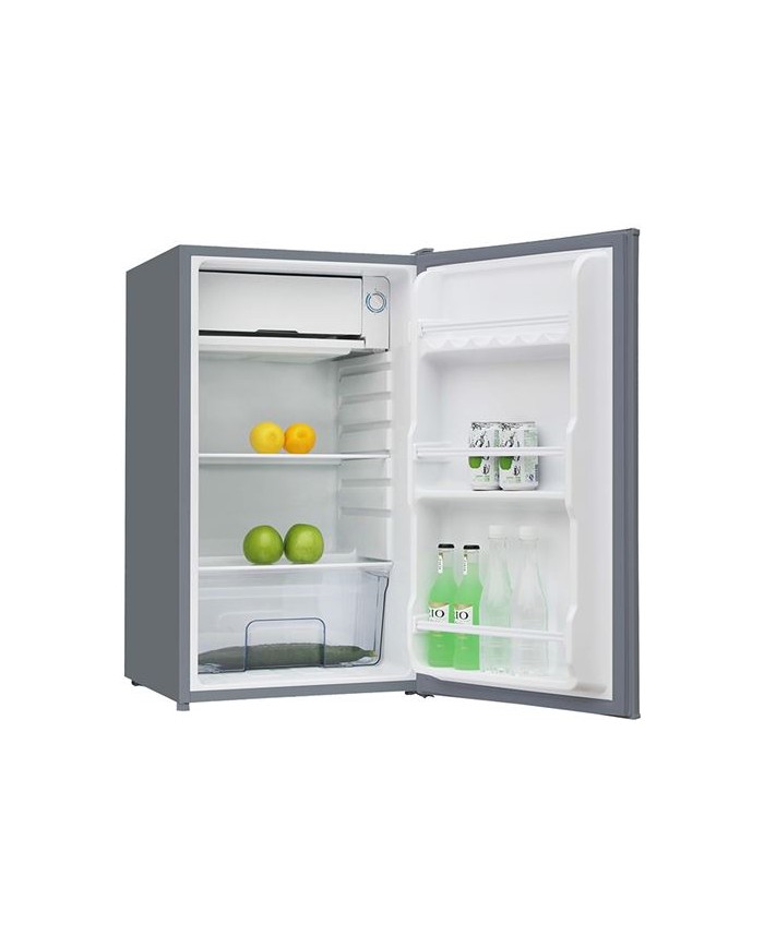 Capacidad: 90 litros - Nevera: 80 litros - Congelador: 10 litros Puerta inox. Puerta reversible. Estantes de vidrio. Cajn para frutas y verduras. Patas ajustables en altura. Temperatura ajustable. Consumo: 0.348kWh / 24 horas Clase E Climate: N, ST Nivel de ruido: 41 dBa Dimensiones nevera: 480x450x831mm Dimensiones caja: 510x465x860mm Peso: 19 Kg