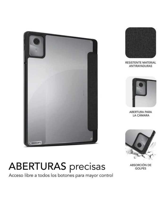 La funda SUBBLIM para Lenovo Tab M11 destaca por su diseño Full SmartCover y su estructura monobloque de termoplástico, facilitando la disipación de impactos y proporcionando una barrera eficaz ante caídas accidentales. Su sección trasera transparente permite exhibir la estética original de la tablet sin renunciar a la seguridad, mientras que los bordes reforzados con tecnología Shock Absortion absorben y dispersan la energía de los golpes.
