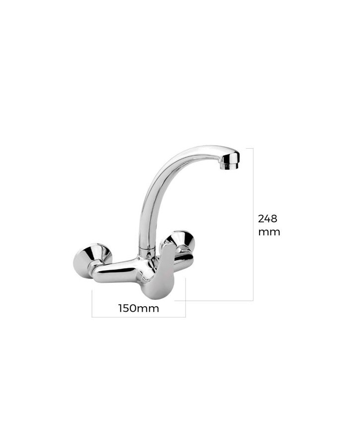 Tipo: monomando Color: cromado Material: acero inoxidable Medida: 150X248mm Cao alto Con cartucho cermico 15cm entre centro tomas