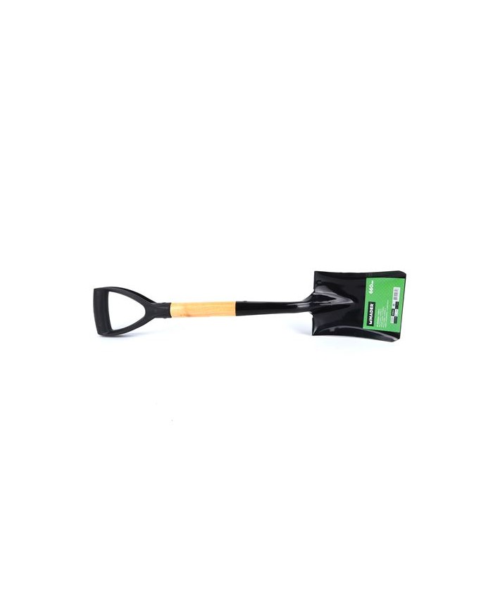Pala cuadrada fabricada en acero de color negro con mango de madera tipo anilla. Indicada para remover tierras compactas o pedregosas. Diemension total: 660mm Pala: 15x28mm