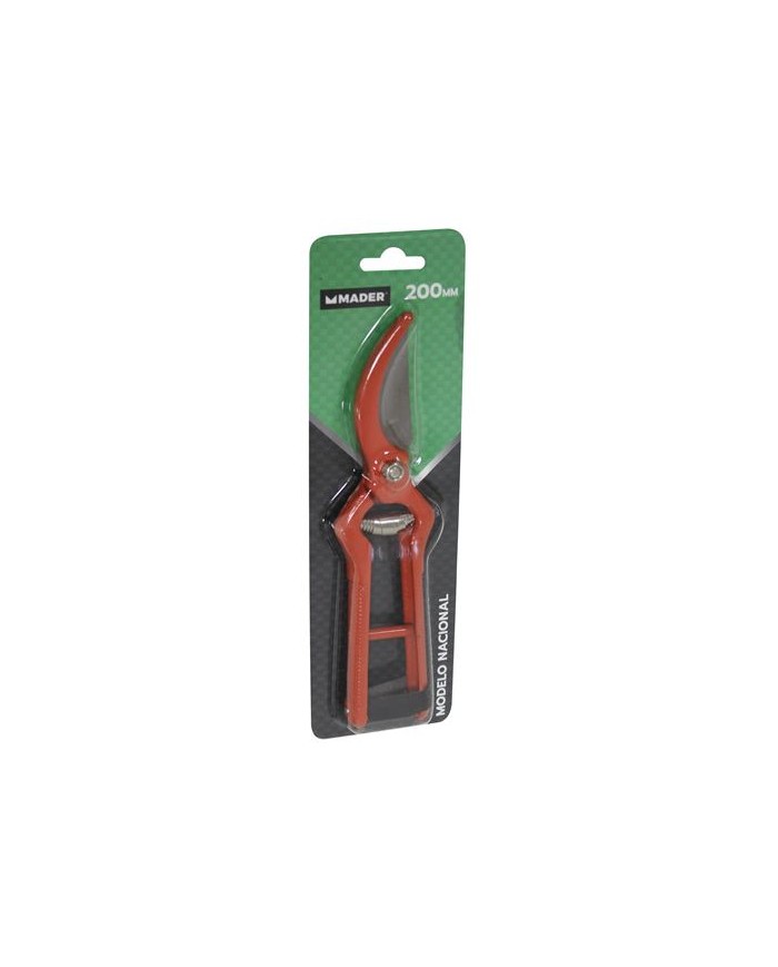 Tijera clsica de poda a una mano en acero forjado tratado trmicamente para evitar roturas de 200 mm. Con mangos de acero y hoja bypass curvada para maderas verdes.Embalaje: Altura 26.00 cm Anchura 8.00 cm Longitud 2.00 cm Peso Bruto 0.32 kg Peso Neto 0.30 kg
