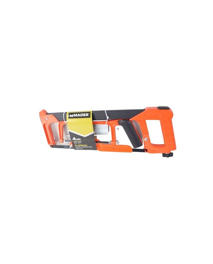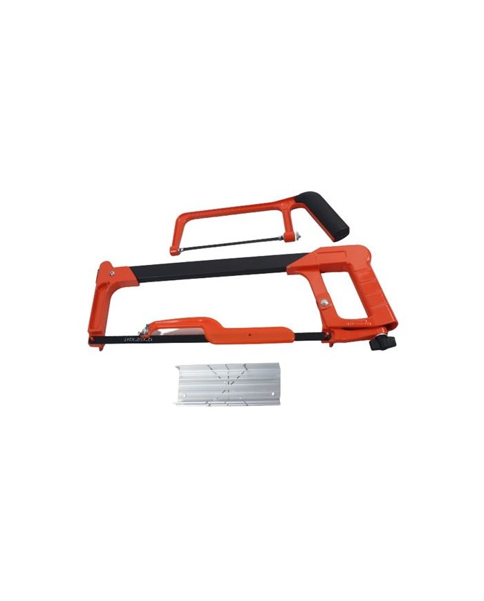 Juego de seguetas compuesto por: 1 Segueta corte metal con tensor, mango aluminio, 300mm 1 Mini segueta corte metal, 150mm 1 Caja ingletes metlica 1 Cuchilla de sierra con mangoEmbalaje: Altura 16.00 cm Anchura 40.00 cm Longitud 3.00 cm Peso Bruto 0.67 kg Peso Neto 0.63 kg