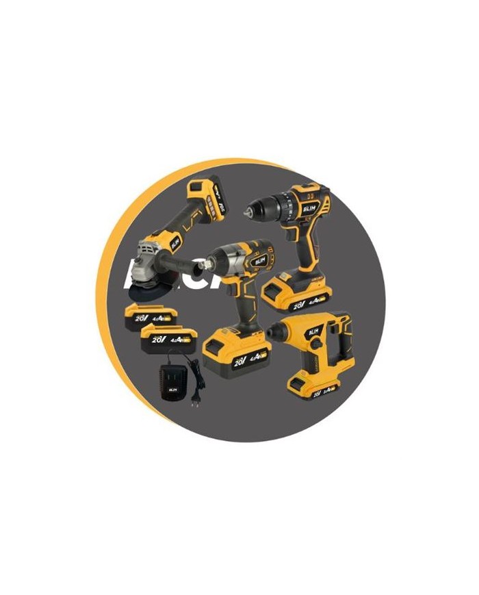 PACK 20V TALADRO + LLAVE DE IMPACTO + RADIAL + MARTILLO 2X 4AH BLIM