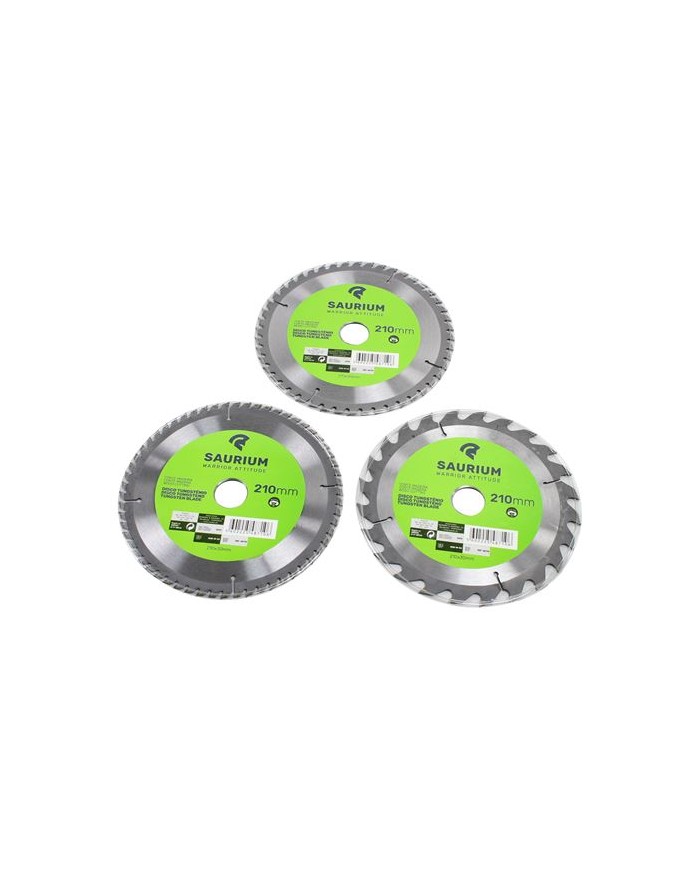 PACK 3 DISCOS CORTE MADERA PARA SIERRAS 210MM. SAURIUM