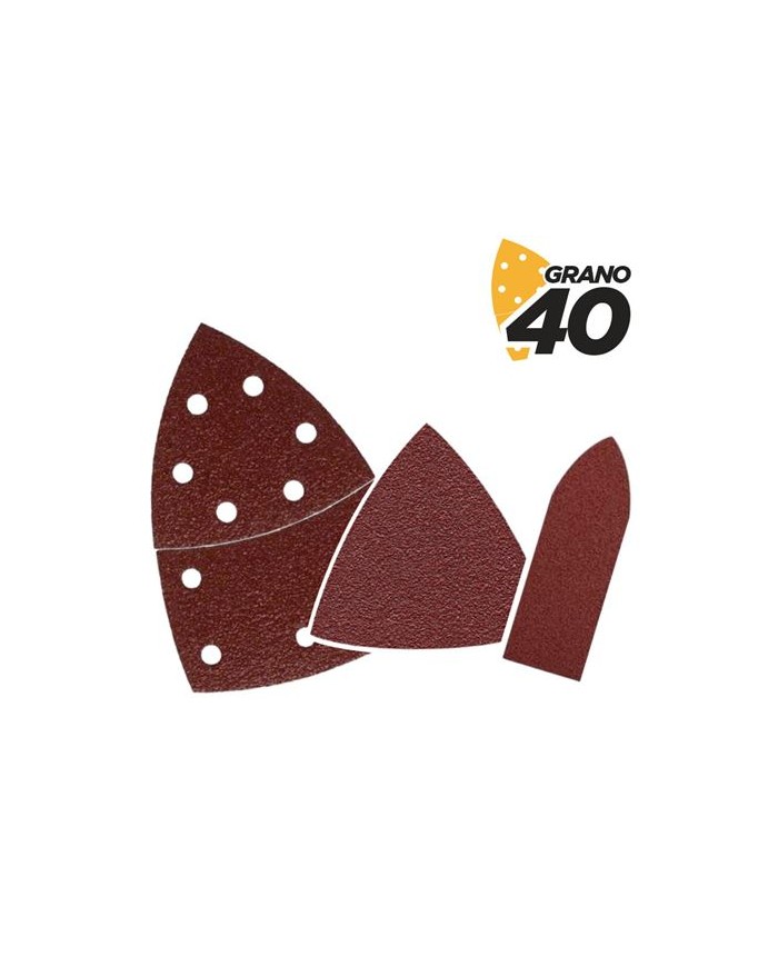 Para la lijadora modelo BL0137 Pack de lijas: 9 unidades. Forma: tres modelos Grano: 40 Con velcro.