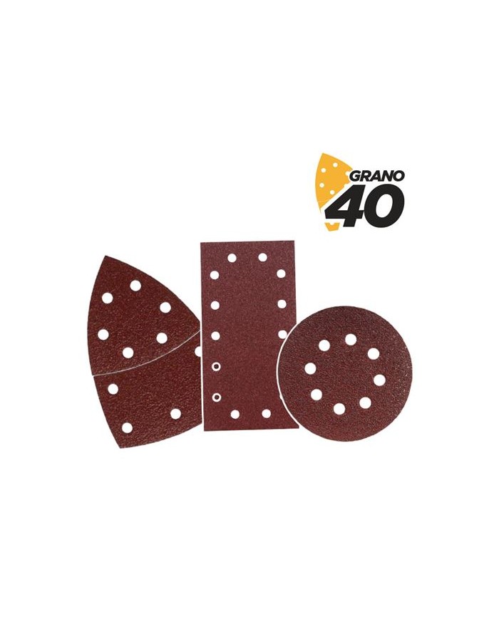 Para la lijadora modelo BL0151 Pack de lijas: 9 unidades. Forma: tres modelos Grano: 40 Con velcro.