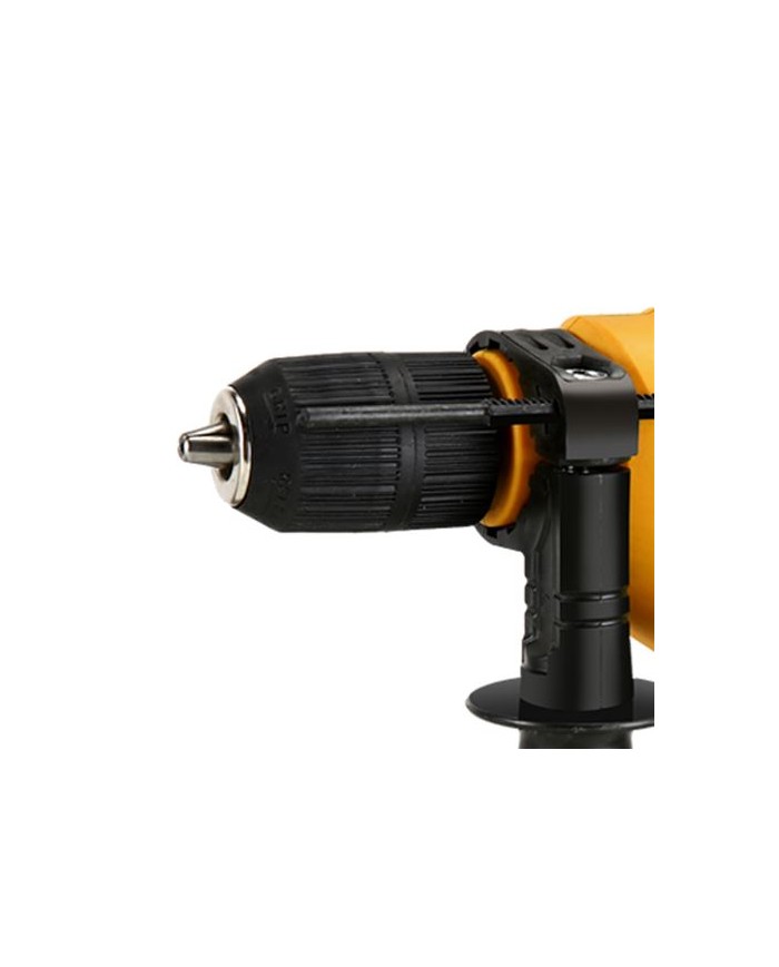 Potencia: 710W Taladro percutor Capacidad de perforacin: 13mm (metal) / 13mm (hormign) / 25mm (madera) Interruptor de bloqueo Diseo ergonmico Mango auxiliar con rotacin de 360 Velocidad regulable: 0 - 2800 rpm Portabrocas de 13mm con llave Incorpora maletin PVC