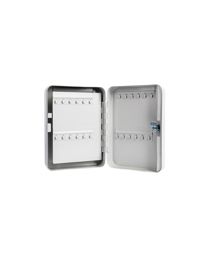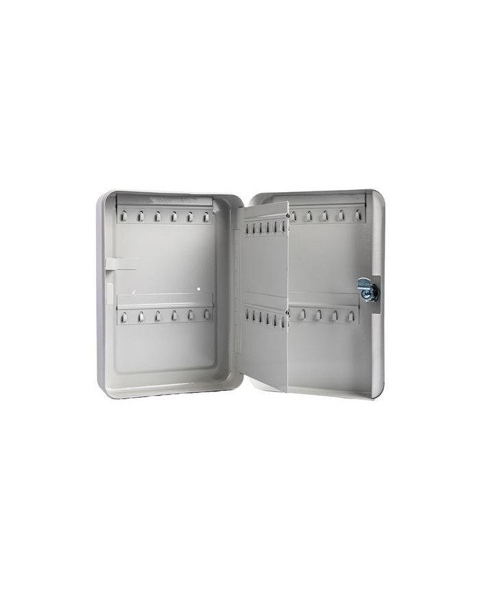 Caja metlica para llaves de alta resistencia, ideal para mantener organizadas y protegidas hasta 48 llaves. Perfecta para hogares, oficinas, alojamientos tursticos, talleres y garajes. Incluye ganchos numerados y accesorios para instalacin mural. Cierre con llave: Se suministra con 2 llaves para mayor seguridad. Organizacin eficiente: 48 ganchos metlicos fijos con etiquetas numeradas incluidas. Instalacin sencilla: Agujeros pre-perforados en la parte trasera + tornillos y tacos incluidos. Uso profesional o domstico: Ideal para controlar el acceso en empresas, comunidades o negocios de alquiler vacacional. Dimensiones: 250 x 180 x 80 mm Capacidad: 48 llaves Material: Acero pintado Tipo de cierre: Con llave (x2 incluidas)