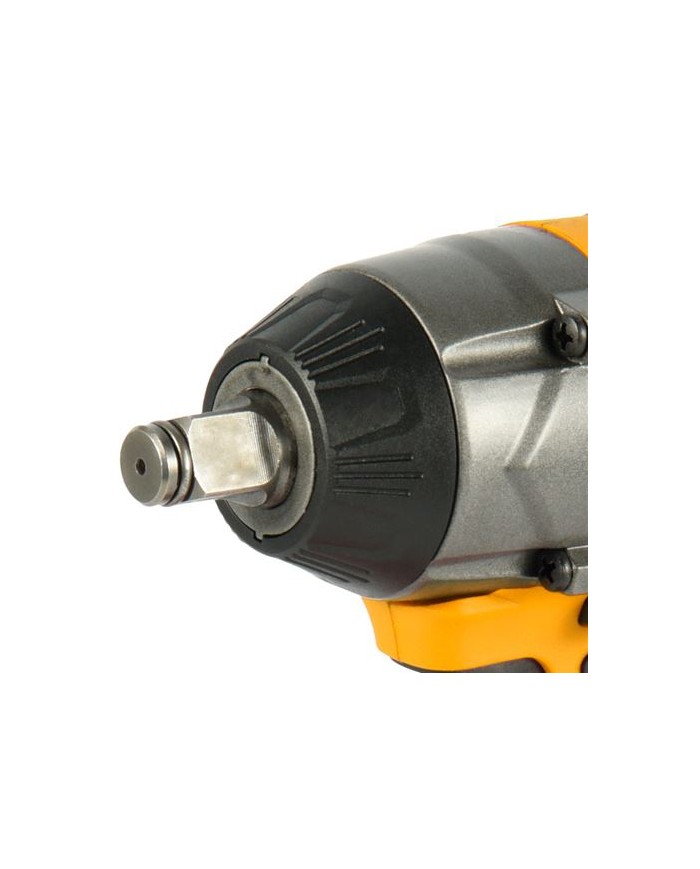 Llave de impacto 20V Motor brushless (sin escobillas) Mango ergonmico Incluye 1 batera 20V - 4.0 Ah Dado de fijacin (1/2") Luz LED para iluminar la zona de trabajo. Par mximo: 420Nm Velocidad: 0 - 1600rpm / 0 - 1900rpm / 0 - 2300rpm Impactos: 0 - 3000bpm Cargador rpido. Incluye maletin de transporte con accesorios Gancho para cinturn 5 unidades por caja.