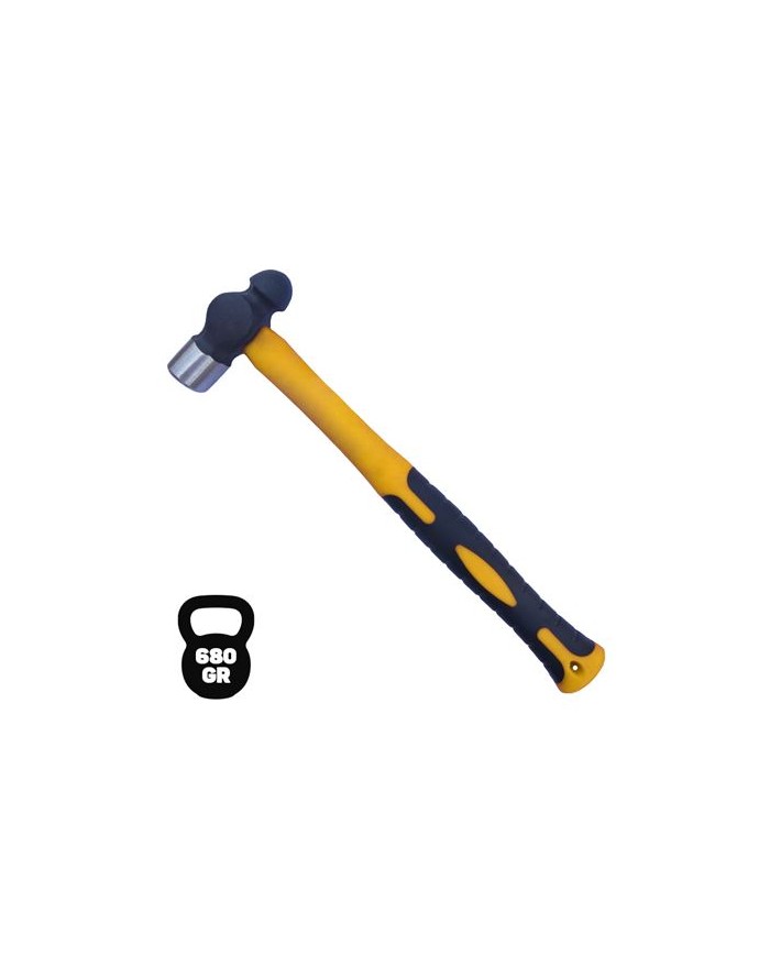 Martillo de bola con una cabeza fabricada en resistente acero forjado con un peso de 680 gr. perfecta para realizar golpes precisos y potentes. Cuenta con un mango de fibra de vidrio con empuadura de goma.