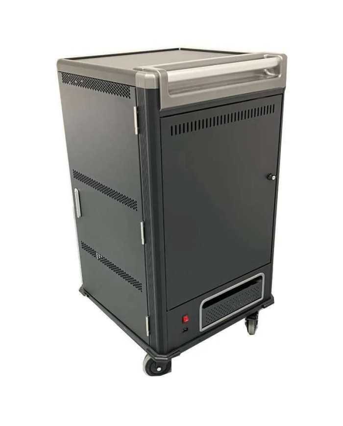 Armario de Transporte Metlico: Diseado para alojar hasta 30 dispositivos electrnicos, este armario cuenta con ruedas con freno para fcil movilidad, estanteras ordenadas, y seguridad mejorada con cerraduras y proteccin elctrica. Ideal para escuelas y oficinas, mantn tus dispositivos organizados y seguros!