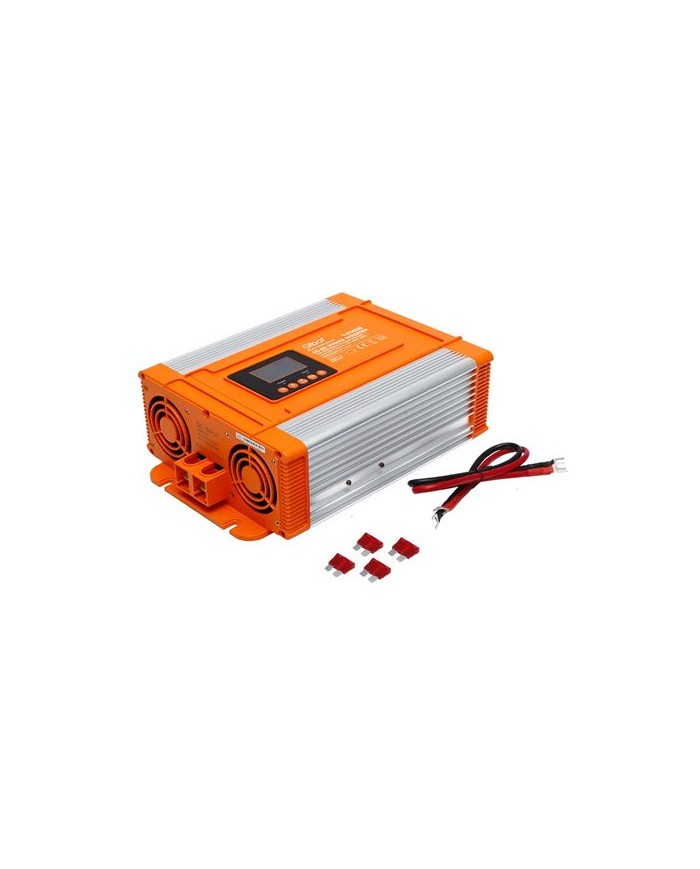 Proporcionan una salida de alta calidad que es compatible con la mayora de los dispositivos electrnicos sensibles. Pantalla LCD donde podrs visualizar voltaje de la batera, nivel de la batera, voltaje de salida/frecuencia/corriente/potencia, indicador de conexin de carga/capacidad, cdigo defectuoso. Conversor de corriente 12V - 230V Onda sinusoidal pura. Potencia continua: 1200W Potencia mxima: 2400W Voltaje de entrada: 12V Voltaje de salida: 230V 50Hz Puerto USB 5V, 2.1A 2 x enchufes schukos Protecciones: - Sobrecalentamiento. - Exceso de carga. - Sobretensin. - Cortocircuito. - Polaridad inversa. - Toma de tierra. - Bajo voltaje batera. Accesorios: - 4 x fusibles 50A