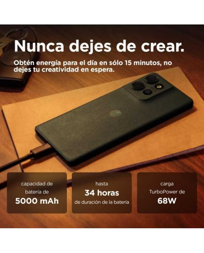 Caractersticas Smartphone Motorola Edge 50_x000D_ _x000D_ Creatividad profesional con Moto AI. La integracin de Moto AI en la Cámara principal permite capturar fotografas y vdeos de calidad superior, ajustando parmetros automticamente para obtener resultados perfectos en cualquier situacin, ideal para creadores de contenido, fotgrafos mviles y usuarios exigentes que buscan siempre la mejor toma._x000D_ _x000D_ Pantalla pOLED Super HD de 6,67'' ultra fluida. Disfruta de una experiencia visual inmersiva gracias a su pantalla curva pOLED con resolucin 2712 x 1220, brillo mximo de 1600 nits, frecuencia de refresco de 120 Hz y cobertura DCI-P3 al 100%, lo que se traduce en colores intensos y un detalle insuperable para gaming, streaming y retoque de imagen._x000D_ _x000D_ Potencia y almacenamiento de nivel avanzado. La combinacin de 12GB RAM LPDDR4X y el procesador Qualcomm Snapdragon 7 Gen 1 Accelerated Edition proporciona un rendimiento sobresaliente en multitarea, juegos exigentes y edicin mvil. Los 512GB de almacenamiento interno garantizan espacio holgado incluso en escenarios profesionales._x000D_ _x000D_ Batera de larga duracin con carga TurboPower de 68W y carga inalmbrica. Olvdate de quedarte sin energa: la batera de 5000 mAh soporta jornadas intensas y la carga ultrarrpida te mantiene siempre conectado y listo para crear._x000D_ _x000D_ Diseo prmium y proteccin IP68. Materiales de mxima calidad: aluminio, vidrio y cuero vegano, con certificacin IP68 resistente al agua y polvo. Adems, cumple estndar militar MIL-STD-810H, lo que permite usarlo en entornos exigentes sin preocupaciones._x000D_ _x000D_ Conectividad 5G dual SIM, Wi-Fi 6E y Bluetooth 5.2. Siempre actualizado con las ltimas tecnologas de conectividad para mxima velocidad de descarga y transmisin de datos._x000D_ _x000D_ Este mvil est pensado para profesionales de la imagen, streamers, usuarios avanzados y cualquier entusiasta techie que no acepta lmites. No te conformes, lleva tu smartphone al siguiente nivel. Descubre hasta dnde puedes llegar!_x000D_ Especificaciones Smartphone Motorola Edge 50_x000D_ EspecificacinDetalle_x000D_ Pantalla6,67" pOLED curva, 2712 x 1220, 120 Hz, HDR10+ (brillo 1600 nits)_x000D_ ProcesadorQualcomm Snapdragon 7 Gen 1 Accelerated Edition, 8 ncleos (Cortex-A710 + Cortex-A510)_x000D_ RAM12 GB LPDDR4X_x000D_ Almacenamiento512 GB (sin microSD)_x000D_ Cámara traseraTriple: 50 MP (Sony LYTIA 700C, f/1.8, OIS) + 13 MP ultra gran angular + 10 MP telefoto_x000D_ Cámara frontal32 MP (f/2.4)_x000D_ Vdeo4K (3840 x 2160)@30fps, slow-motion hasta 240fps_x000D_ Batera5000 mAh, carga rpida TurboPower 68W, carga inalmbrica_x000D_ Sistema operativoAndroid 14 con Google Assistant_x000D_ SIM / RedDoble SIM (NanoSIM + eSIM), 5G Sub6_x000D_ ConectividadWi-Fi 6E, Bluetooth 5.2, NFC, USB-C 2.0_x000D_ ResistenciaIP68 (agua/polvo), MIL-STD-810H_x000D_ Dimensiones y peso160,8 x 72,4 x 7,79 mm, 180 g_x000D_ ColorJungle Green_x000D_ MaterialAluminio, vidrio, cuero vegano, plstico, PU_x000D_ AudioEstreo, Dolby Atmos_x000D_ SensoresProximidad, acelermetro, luz, giroscopio, brjula electrnica, huella dactilar bajo pantalla_x000D_ ContenidoCable USB-C, instrumento SIM, funda protectora