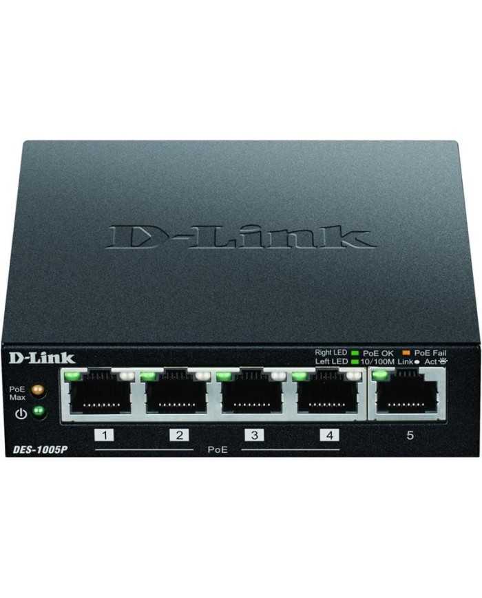 El conmutador sobremesa DES-1005P Fast Ethernet PoE proporciona una forma rentable para que SOHO y PYME se beneficien de la tecnologa Power over Ethernet (PoE) al permitir a los usuarios encender dispositivos como puntos de acceso inalmbricos, cmaras de red o telfonos IP directamente desde los cables de red. El DES-1005P est equipado con cuatro puertos PoE e integra la tecnologa Green Ethernet de D-Link para ahorrar energa cuando el conmutador no est en uso. Su diseo sin ventilador lo hace completamente silencioso, por lo que es adecuado para oficinas, bibliotecas o salas de reuniones.