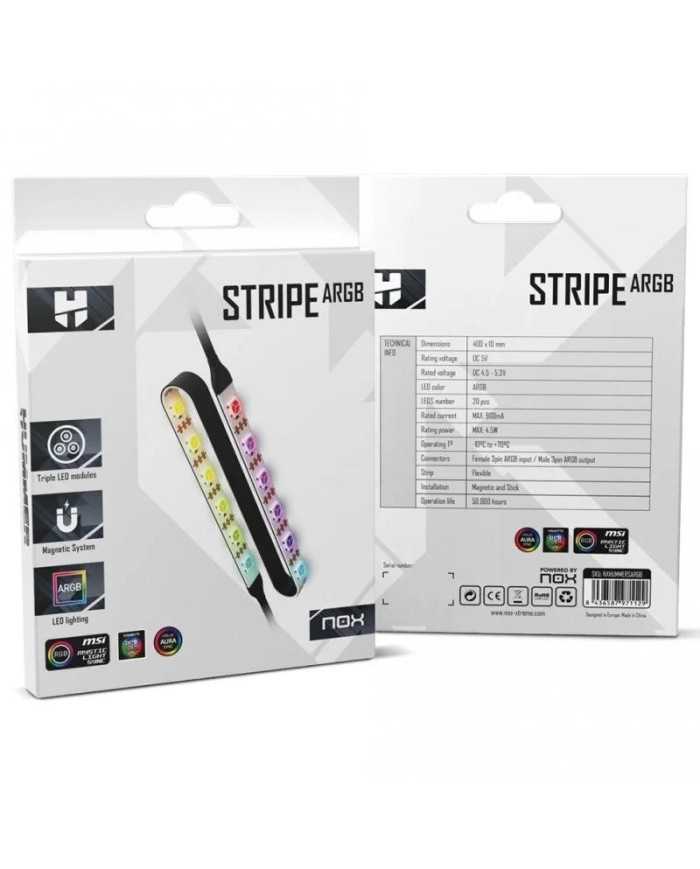 - ALTA COMPATIBILIDAD. Nox Stripe ARGB es compatible con MSI Mystic Lith Sync, Asus Aura Sync y Gigabyte RGB, de forma que, de manera simple, puedas sincronizar tu equipo, iluminando tu configuracin al completo, ofreciendo un espectculo de luces casi infinito, pues Nox Stripe ARGB brinda hasta cincuenta mil horas de vida til._x000D_