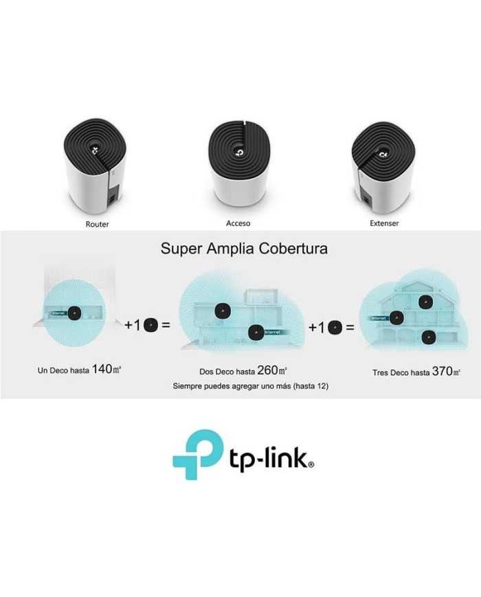 _x000D_TP-Link Mesh significa que las unidades Deco trabajan juntas para formar una red unificada. Tu telfono o tablet se conectan automticamente al Deco ms rpido a medida que te desplazas por su hogar, creando una experiencia de Wi-Fi verdaderamente perfecta.