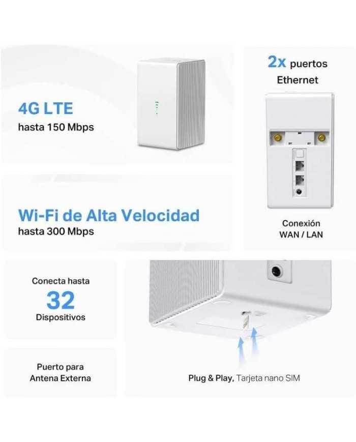 _x000D_- Conectividad 4G y Wi-Fi: Permite acceso a Internet en cualquier lugar usando una tarjeta SIM 4G y es compatible con hasta 32 dispositivos simultneamente, con velocidad Wi-Fi de hasta 300 Mbps (Wi-Fi 4 en banda de 2.4 GHz)._x000D_