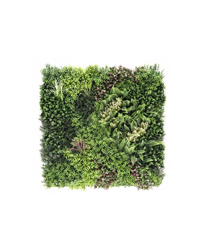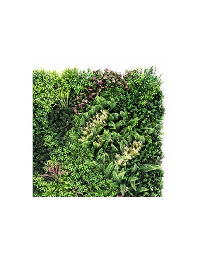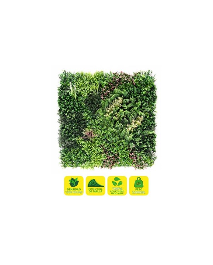 Jardin vertical artificial, ideal para decorar terrazas, balcones, paredes, techos, columnas, etc. Transforma tu espacio al instante. Crea zonas ms acogedoras de forma rpida y sencilla con plantas sintticas de calidad Sin mantenimiento. Si eres olvidadizo o no tienes tiempo para cuidar de tus plantas, la solucin sinttica te permite olvidarte de regar, cortar, abonar... Suponiendo un gran ahorro de tiempo y agua. Cuentan con un sencillo sistema de instalacin. Esta solucin, robusta, pero sencilla, permite desmontar y volver a montar los paneles con facilidad. Fabricado con hojas artificiales unidas a una malla no apreciable una vez instalada. Diseados para durar: estn fabricados con materiales de calidad. Tienen proteccin contra los rayos