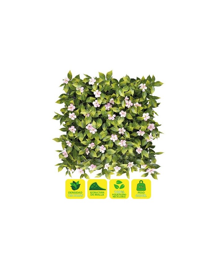 Jardin vertical artificial, ideal para decorar terrazas, balcones, paredes, techos, columnas, etc. Transforma tu espacio al instante. Crea zonas ms acogedoras de forma rpida y sencilla con plantas sintticas de calidad Sin mantenimiento. Si eres olvidadizo o no tienes tiempo para cuidar de tus plantas, la solucin sinttica te permite olvidarte de regar, cortar, abonar... Suponiendo un gran ahorro de tiempo y agua. Cuentan con un sencillo sistema de instalacin. Esta solucin, robusta, pero sencilla, permite desmontar y volver a montar los paneles con facilidad. Fabricado con hojas artificiales unidas a una malla no apreciable una vez instalada. Diseados para durar: estn fabricados con materiales de calidad. Tienen proteccin contra los rayos