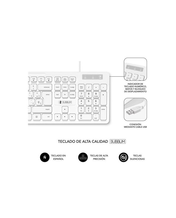 COMBO TECLADO Y RATON CON CABLE BUSINESS SLIM BLANCO SUBBLIM