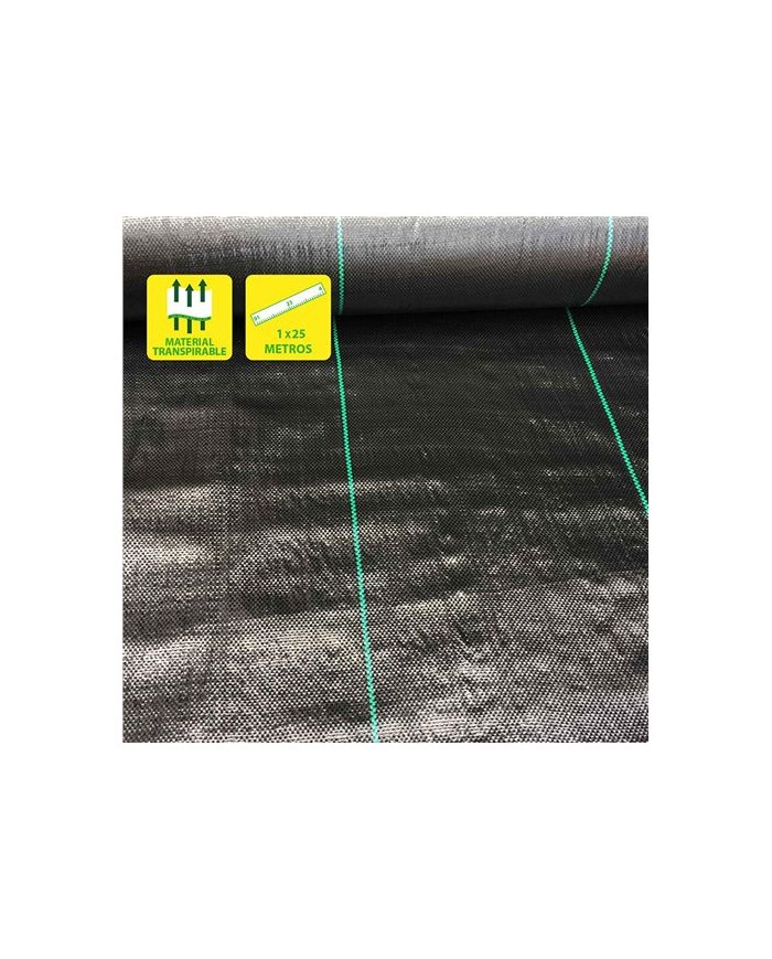 La Malla antihierbas 100 gr/m es usada generalmente en agricultura y jardinera, tiene como objetivo proteger los cultivos de plagas y de hierbas no deseadas. Su aplicacin en agricultura sirve para evitar el crecimiento de malas hierbas, permitiendo al mismo tiempo respirar y mantener la humedad del suelo. En el caso de la jardinera, tambin evita el crecimiento de hierbas no deseadas y permite la aplicacin de elementos decorativos, como piedras decorativas. 100 gr/m2 Dimensiones rollo: 1x25 metros (25 metros cuadrados) Color Negro