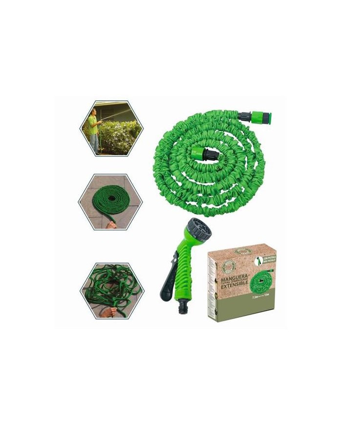 MANGUERA EXTENSIBLE CON PISTOLA 7.5M VERDE