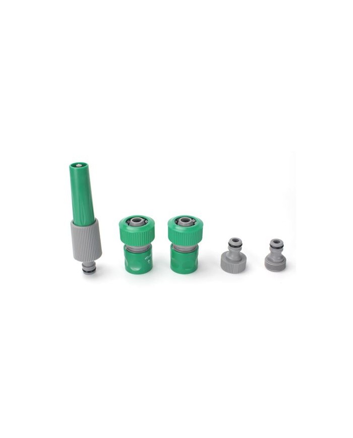 Juego bsico de 5 piezas de riego. Contiene lanza de riego y conectores para manguera de ".Embalaje: Altura 20.00 cm Anchura 13.00 cm Longitud 4.50 cm Peso Bruto 0.19 kg Peso Neto 0.16 kg
