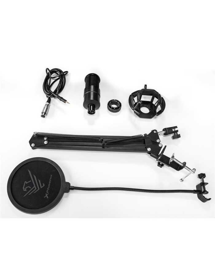 Un micrfono de condensador completo, con sistema onmidireccional, brazo articulado y mas accesorios para obtener los mejores resultados. El mejor rendimiento debe venir acompaado de una conexin Jack para sacar el mximo partido a tu placa gaming o tarjeta de sonido, ofreciendo muchas ms posibilidades de personalizacin que las conexiones usb plug and play, exprime todo el potencial. Podrs ajustar el brazo articulado para conseguir la posicin que deseas ygracias a su base rotativa podrs moverlo con facilidad una vez fijada laposicin. Para evitar cualquier dao incluye una montura de choque antivibracin. Cada detalle cuenta a la hora de conseguir el mejor sonido y por ello, no poda faltar un filtro pop junto con un filtro antiviento, reduce al mximo los sonidos no deseados y consigue un sonido claro y ntido. Un look profesional junto a un resultado de estudio, el accesorio