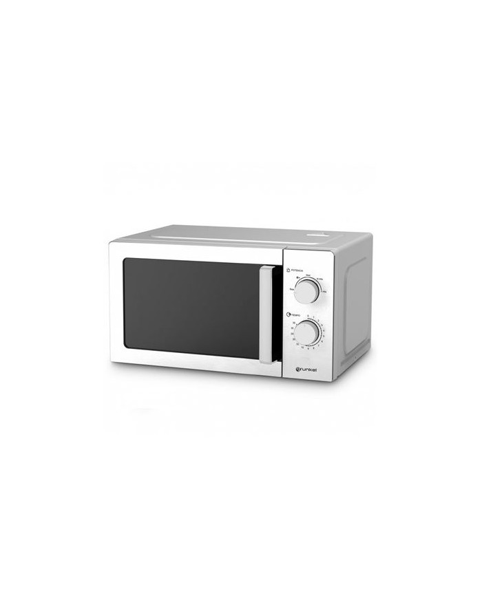 Capacidad: 20l Potencia: 700W 5 niveles de potencia Funcin de descongelacin Temporizador regulable hasta 35 minutos Puerta tirador de apertura y cierre de seguridad Panel frontal en acero inoxidable Bandeja de cristal: 255mm Consumo mximo: 1100W Alimentacin: 230V ~50Hz Medidas del producto: 45 x 35 x 26,2cm | 9,93kg