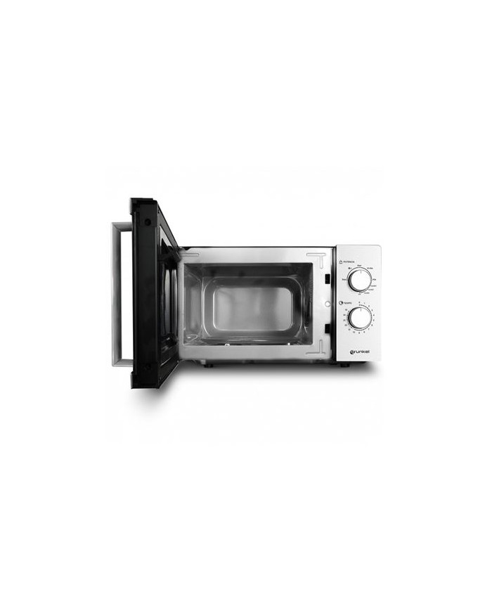 Capacidad: 20l Grill: 800W Potencia: 700W 5 niveles de potencia 3 niveles de combinacin Funcin de descongelacin Temporizador regulable hasta 35 minutos Puerta tirador de apertura y cierre de seguridad Panel frontal en acero inoxidable Bandeja de cristal: 255mm Consumo mximo: 1100W Alimentacin: 230V ~50Hz Medidas del producto: 45,5 x 34,5 x 26,5cm | 9,93kg