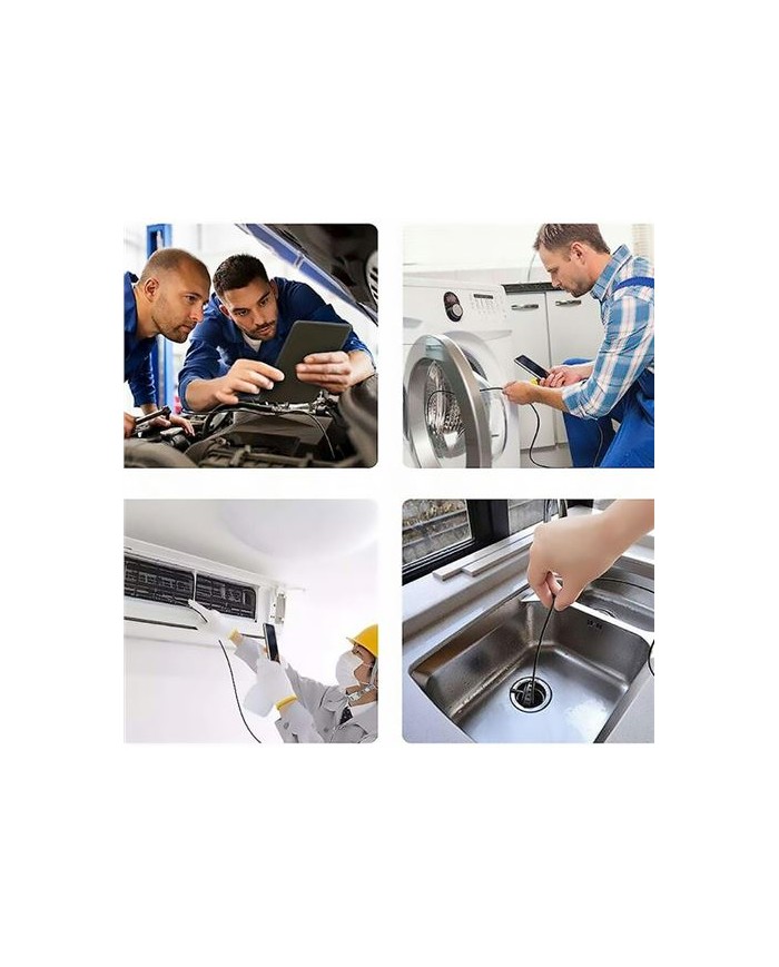 Cámara ENDOSCOPIO UNIVERSAL Un endoscopio en un cable flexible con calidad de imagen de 1920x1080p y una lente grande de 8 mm es un producto que se utilizar al realizar tareas domsticas y durante el trabajo profesional especializado. El dispositivo es muy cmodo de usar. Simplemente descargue la aplicacin gratuita a su telfono y conecte el endoscopio a su telfono inteligente y la Cámara comenzar a transmitir imgenes. Tambin puede conectar el endoscopio a su computadora y observar todo en la pantalla grande!RESISTENTE A CONDICIONES EXTREMAS El endoscopio est equipado con una lente ms grande de 8 mm, que cubre la imagen con mayor precisin que los modelos con una Cámara de dimetro ms pequeo. El dispositivo es completamente impermeable (IP68), por lo