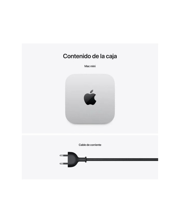 • Este pequeño es un grande. El nuevo Mac mini es una cucada pero tiene una potencia que asusta. En sus 12,7 cm de ancho no caben más tecnología ni respeto por el planeta. Incluye los innovadores chips M4 y M4 Pro de Apple, con velocidad y rendi­miento para dar y tomar, así como una amplia gama de puertos, ahora también en la parte delantera. El Mac mini no solo redefine la eficiencia, además es el primer Mac neutro en carbono. Un prodigio al cuadrado.