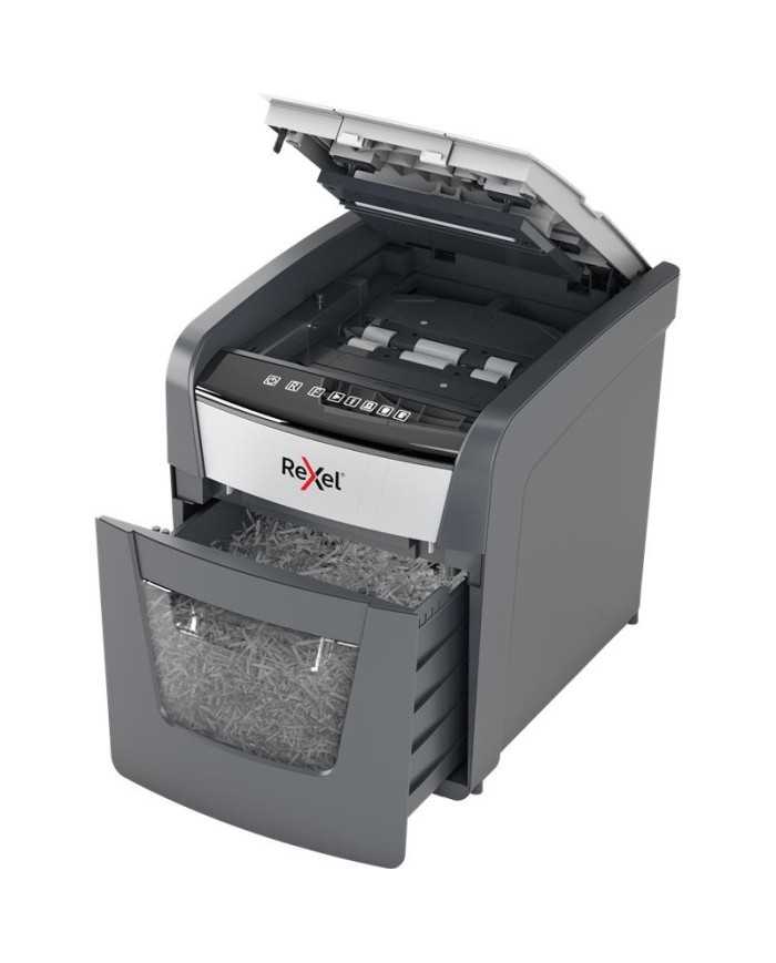 La óptima destructora de partículas Autofeed+ 50X destruye automáticamente hasta 50 hojas de papel A4 (80 g/m²) a la vez, en piezas de corte transversal P4 (4 x 28 mm). Esta destructora con alimentación automática es ideal para su uso en el hogar o en la oficina gracias a su contenedor compacto de 20 litros. No es necesario alimentar manualmente el papel ni quitar las grapas o los clips primero. Esta destructora hará todo el trabajo por usted.