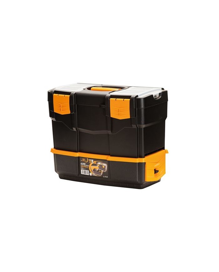 Caja de herramientasMaterial: Plstico resistenteMedidas: Largo 420 mm Profundidad 220 mm Alto 340 mmIncluye 2 organizadores en la tapa Bandeja interior extrableCompartimento adicional para herramientas elctricasDiseo robusto, estable y fcil de transportarIdeal para uso profesional o domstico