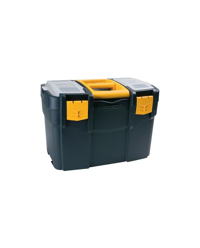 Caja de herramientasMaterial: Plstico resistenteMedidas: Largo 460 mm Profundidad 280 mm Alto 455 mmIncluye 2 organizadores en la tapaBandeja interior extrableCompartimento adicional para herramientas elctricasDiseo robusto y apilableAsa ergonmica para fcil transporteIdeal para profesionales y aficionados al bricolaje