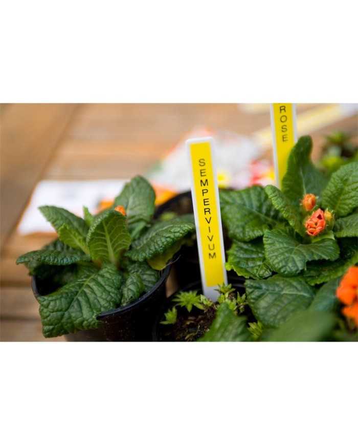 Cinta laminada. Texto negro sobre fondo amarillo. Ancho: 12 mm. Longitud: 8 m